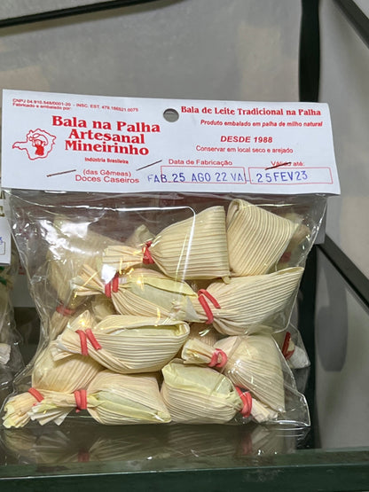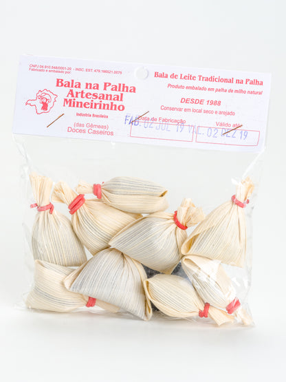 Bala de leite tradicional. Produto embalado em palha de milho natural.